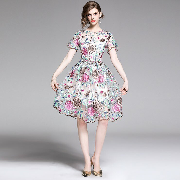 【4月24日20時 新作】 花柄刺繍シースルーワンピース 花柄刺繍シースルーワンピース ■ パーティードレス 結婚式 フォーマル ワンピース フォーマル 卒業式 入学式 二次会 披露宴 発表会 大人 20代 30代 40代 レディース 春 夏 秋 冬
